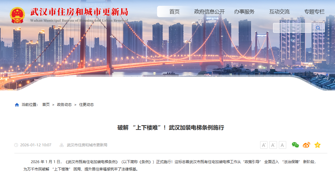 2026年1月1日,《武汉市既有住宅加装电梯条例》正式施行,标志着这项民生工程从“政策引导”迈入“法治保障”新阶段。作为全国首部专门规范既有住宅加装电梯的地方性法规,该条例以35条细则构建起全链条管理体系,为破解老年人“上下楼难”问题提供了坚实的法治支撑。