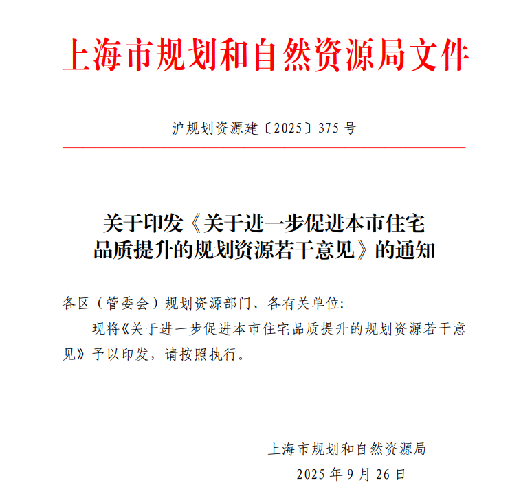 近日,上海市规划和自然资源局正式发布《关于进一步促进本市住宅品质提升的规划资源若干意见》(以下简称“意见”),标志着上海在推动住宅品质提升方面迈出了坚实一步,为未来“好房子”的建设提供了更为明确的规范指导。